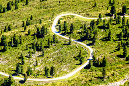 Winding road of the Maloja pass connecting Switzerland and Italy