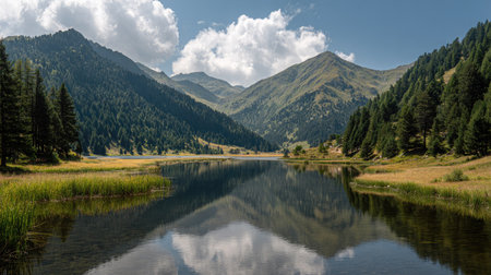 A small lake surrounded by a wood in the italian Alps near a mountain refuge (Trentino, Italy, Europe)