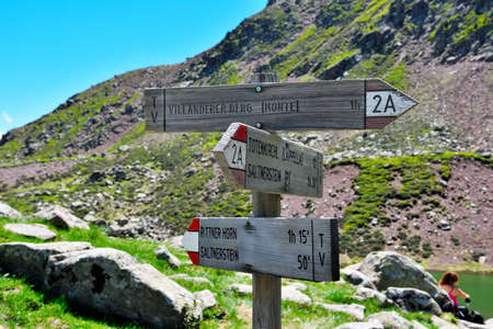 wooden signs with directions for paths and trails June 26 2021 alpe di villandro south tyrol italy