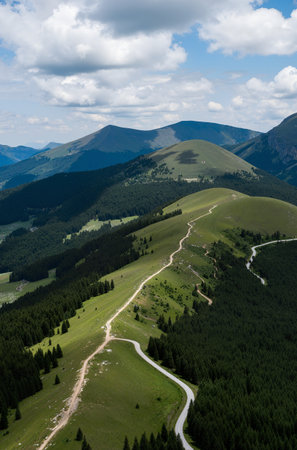 Summer Road Trip. beautiful landscape and view of a mountain road. Romania.