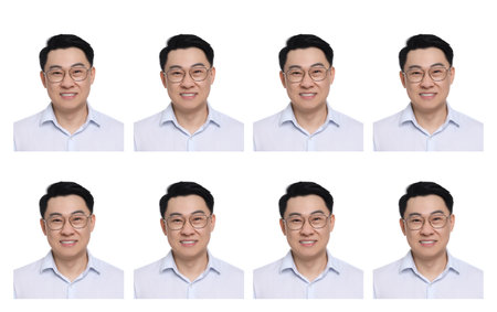 Portrait of a middle-aged man. Isolated on white background. Emotions of a person are calm.