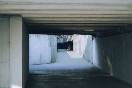 Lone Figure Walking Through Moody Urban Tunnel at Night