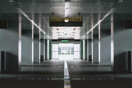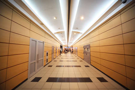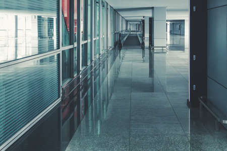 Empty corridor in modern office building. Perspective view. Long exposure.