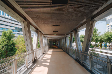 Elevated pedestrian walkway, in the Xinyi District, Taipei, Taiwan.