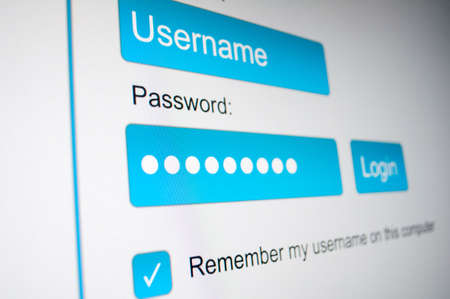 Close up of login and password buttons on a computer screen. Security concept