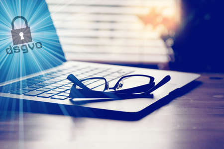 A computer, padlock and DSGVO privacy policy