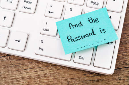 And the password is text on sticky note. with white computer keyboard.