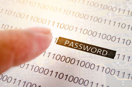 Computer security concept with binary code and password text, great for technology, online security and digital lifestyle themes.