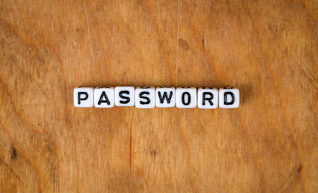 WROCLAW, POLAND - FEBRUARY 12, 2020: Word PASSWORD made of small wooden letters, and GOOGLE logo in the background. Studio shot.