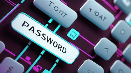 Cybersecurity concept with password key highlighted on a futuristic keyboard.
