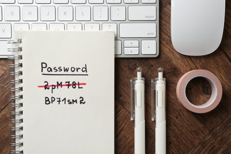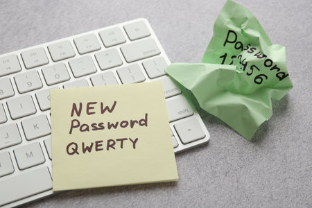 note paper with password key , security password management