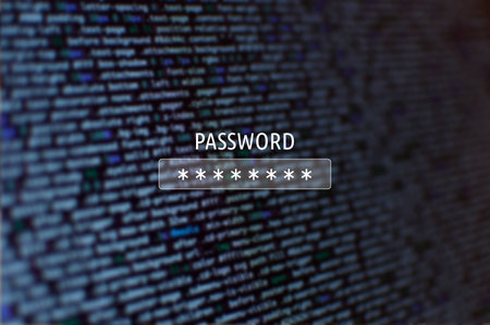 Password input on blurred background screen. Password protection against hackers.