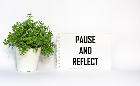 Pause and reflect symbol. Concept words Pause and reflect on beautiful block. Beautiful gray table gray background. Business motivational lifestyle pause and reflect concept. Copy space.