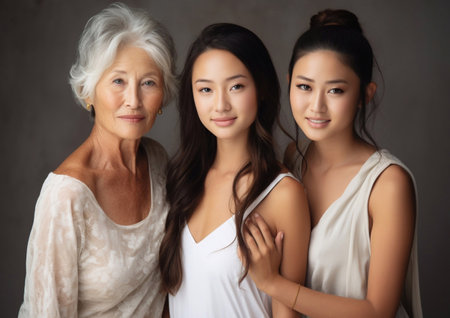 Portrait of three generations happy family of asian women.AI Generative.
