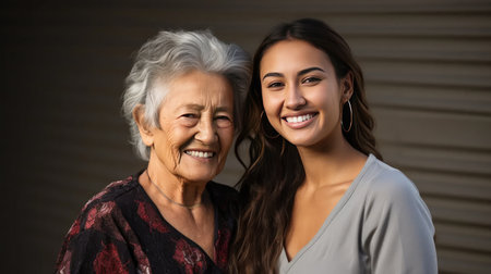 Generative AI : Happy family two generations old mother and adult daughter