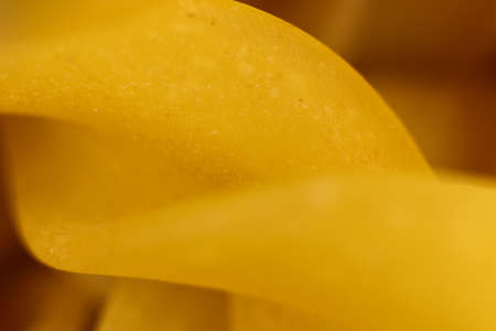 Close up of Italian pasta spaghetti in yellow colors, top view.