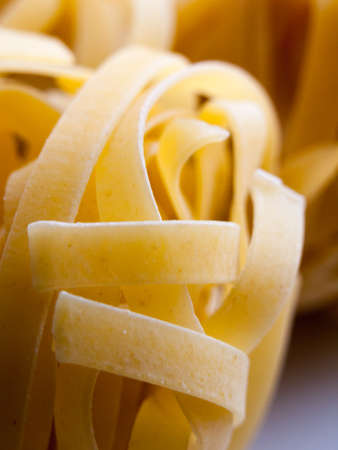 Macro pictore of traditional Italian raw pasta Tagliatelle, selective focus image. Vegeterian food. Nutrition concept. Italian kitchen. Food preparation. Food pasta background. Wallpaper. Tasty.