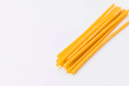 Close-up of long uncooked italian spaghetti background