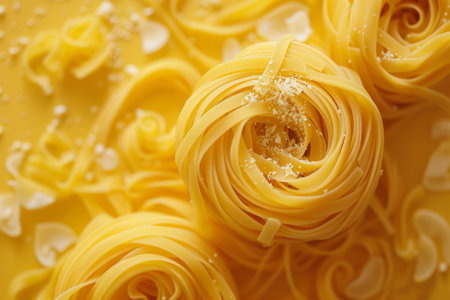 tagliatelle pasta forming delicious golden spirals
