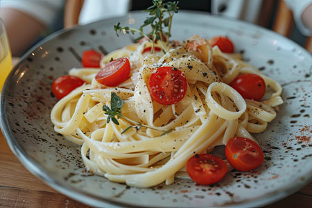 Delicious Plate of Linguine Pasta with Fresh Cherry Tomatoes and Herbs