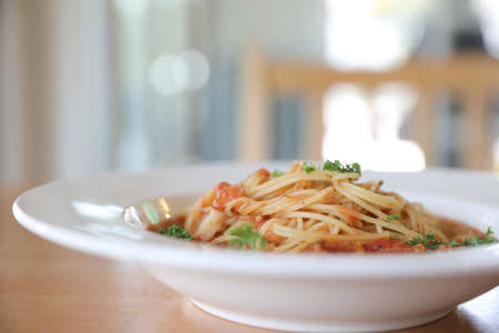 Tasty appetizing classic Italian pasta with a delicious sauce in a restaurant