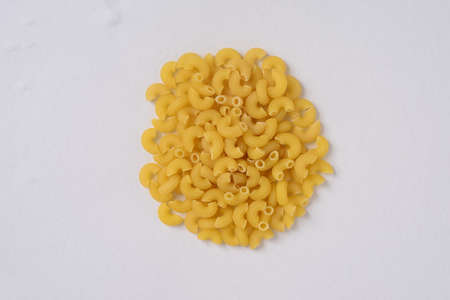 Macro photo food product raw eibow macaroni Vermicelli on white background
