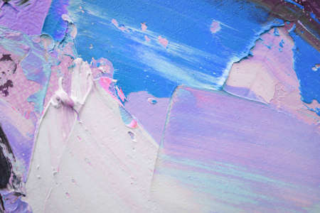 Strokes of different pastel acrylic paints on white canvas, closeup