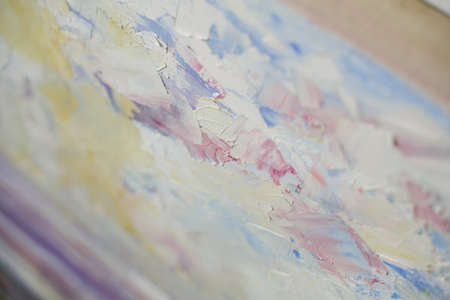 A fragment of the painting. Smears of oil paint. pastel shades. oil or acrylic drawing.