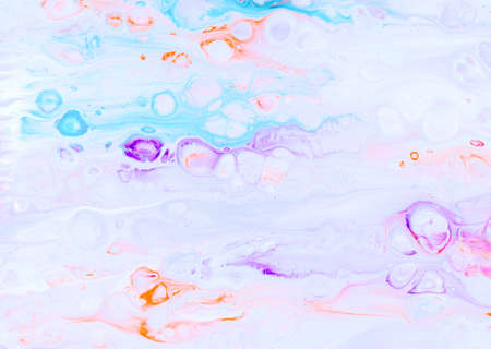 Multicolored lines and spots on liquid surface. Abstract background made with fluid art technique. Trendy colorful backdrop. Fluid art