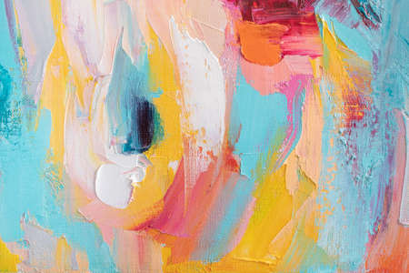 Conceptual abstract closeup of a painting by oil and palette knife on canvas. Oil painting in multicolored tones. The picture is painted in oil.
