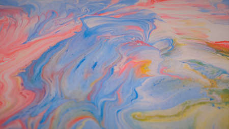 Closeup of multicolor abstract marbling texture. Hand painted beautiful pattern, wallpaper or background for print design, banner.