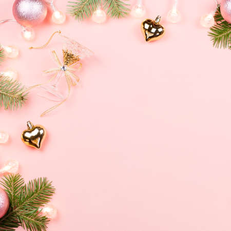 Christmas and New Year background. Festive decoration on pink background.