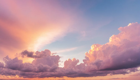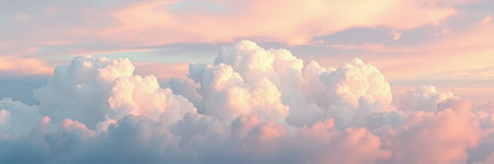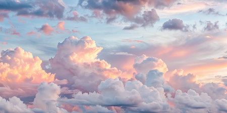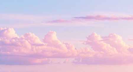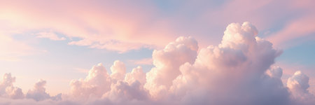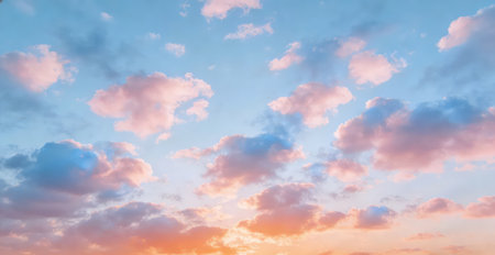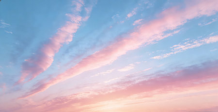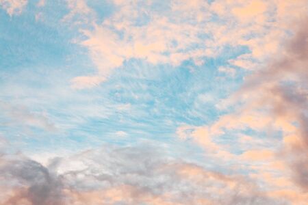 Soft, pastel sky with delicate clouds at sunset, creating a serene and dreamy atmosphere. Background photos for banners, posters and wallpapers.