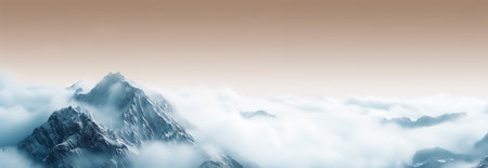 Beautiful top of mountain surrounded by clouds. Generative AI