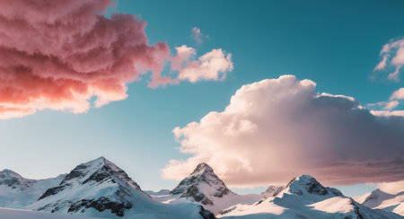 A breathtaking sunset amidst snowy peaks and fluffy clouds. Generate AI