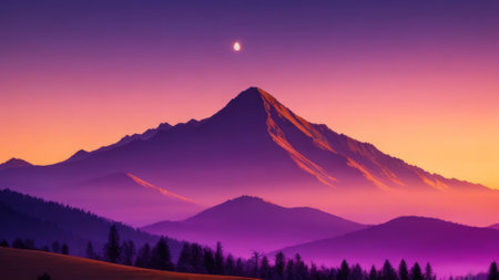 Explore a tranquil mountain landscape at dusk, featuring soft color gradients and layered silhouettes. This serene image evokes calmness and beauty in nature.
