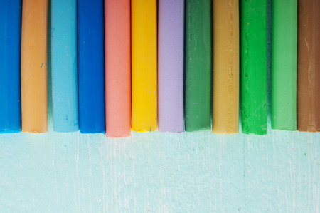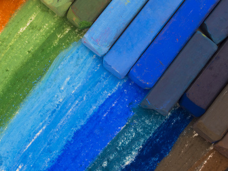 Blurred photo with chopsticks of multicolored art pastels suitable for the background. Symbol of creativity, joy, rich choice.