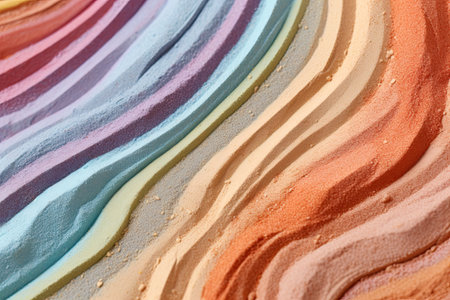 Stripes of rainbow coloured sand , copy space on white background , Generative AI