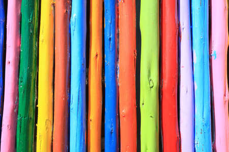Macro closeup of the ends of a wooden stick with multicolored paint