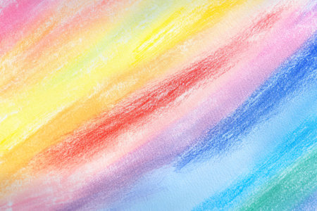 Rainbow creative background of lines drawn with multi-colored crayons. textured bright surface