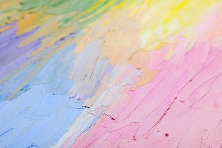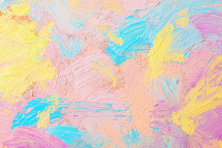 Strokes of different pastel acrylic paints on white canvas, closeup