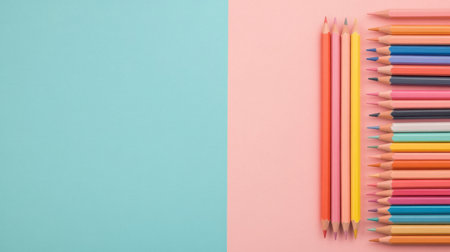 A vibrant and artistic arrangement of colored pencils on a pastel background, perfect for expressing creativity and enhancing artistic projects.