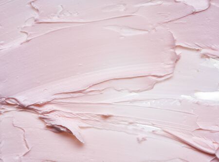 Gently pink brush strokes and texture of face cream or pink acrylic paint on a white background