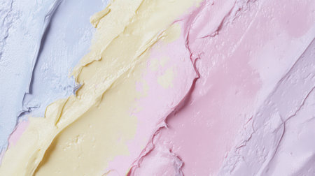 Soft hues of pink yellow and blue blend on a canvas showcasing a beautiful texture created by smooth paint strokes.