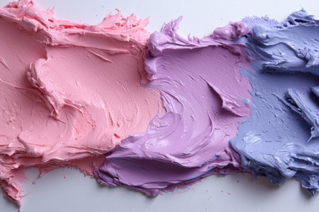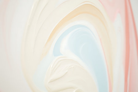 Colorful swirls of pink blue and cream create a dreamy texture on a light surface resembling an artistic splash of paint.