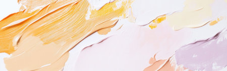 Warm pastel amber strokes flow across a textured surface, blending seamlessly with soft shades of pink and lavender. This artwork captures a calming atmosphere with gentle color transitions.