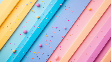 Stripes in pastel colors of yellow, blue, and pink form a cheerful pattern, adorned with colorful sprinkles that add a playful touch, perfect for creative projects or designs.