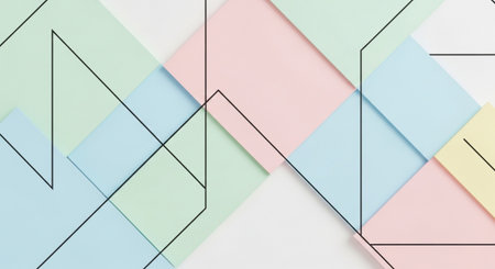 A flat geometric abstract background with soft pastel colors and sharp edges. Clear details and vibrant colors...