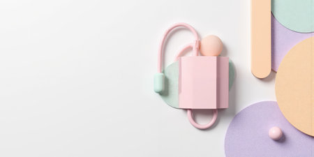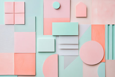 Minimalist composition featuring pastel colored geometric shapes forming an abstract background.