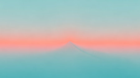 A soft, ethereal gradient background with a horizon line featuring a subtle mountain peak shape in pink and teal hues.